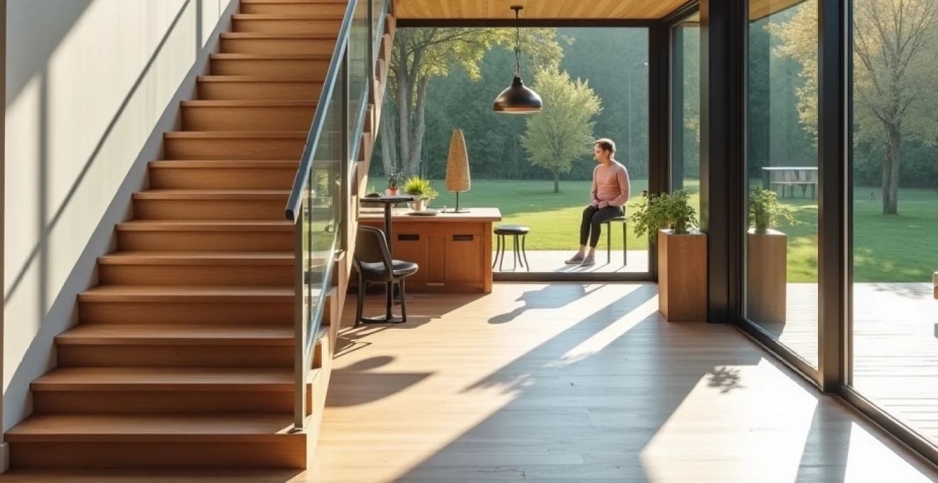 Dans les maisons à plusieurs niveaux, l’escalier droit peut être décliné en configurations plus complexes tout en conservant ses avantages structurels. Les escaliers en L, qui intègrent un palier à 90 degrés, offrent une solution élégante pour les espaces en coin ou pour créer une transition visuelle entre deux zones. Cette configuration permet également de réduire l’emprise au sol de l’escalier tout en maintenant un flux de circulation fluide.