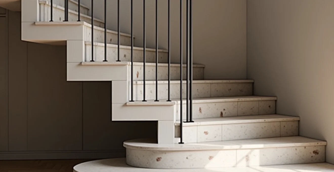 Dans ce cas, le choix du matériau est crucial. Un matériau flexible comme le bois lamellé-collé ou le métal cintré permet de créer cette transition en douceur, maintenant l’harmonie visuelle tout au long de l’escalier.